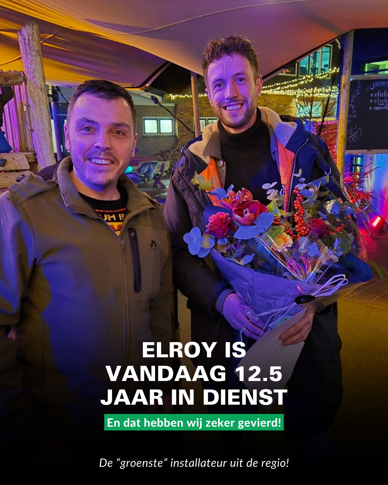 Tijdens de kerst hebben wij onze monteur Elroy Voorstok extra in het zonnetje gezet. Dik verdiend, want Elroy is alweer 12½ jaar een vaste werknemer binnen ons team!